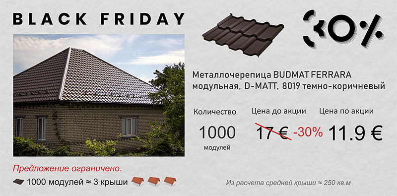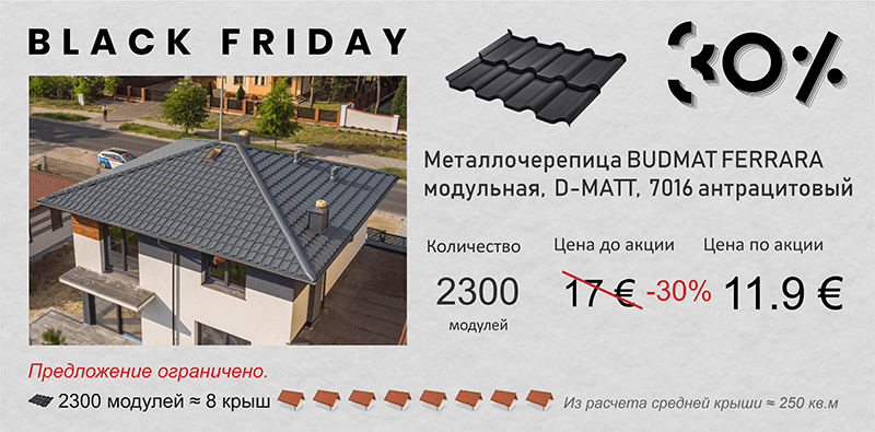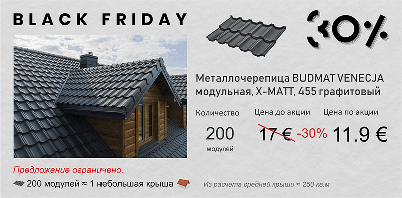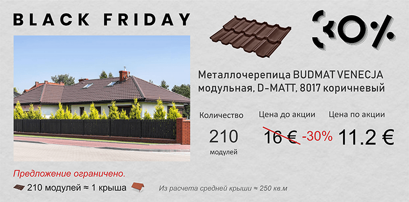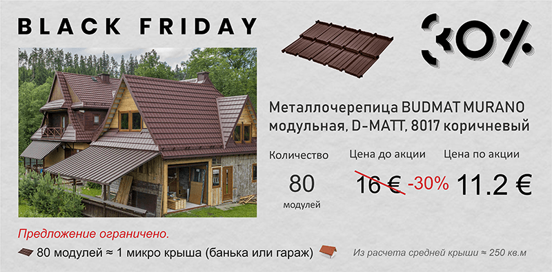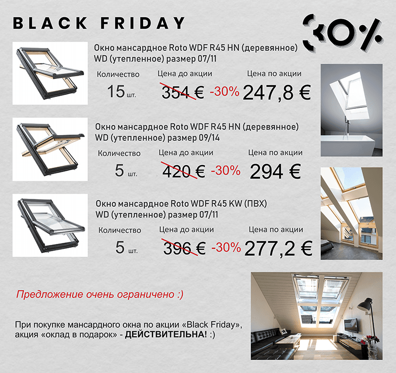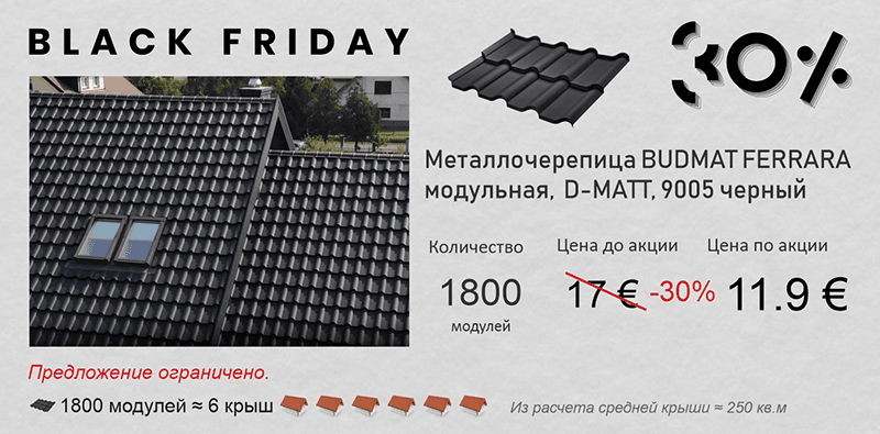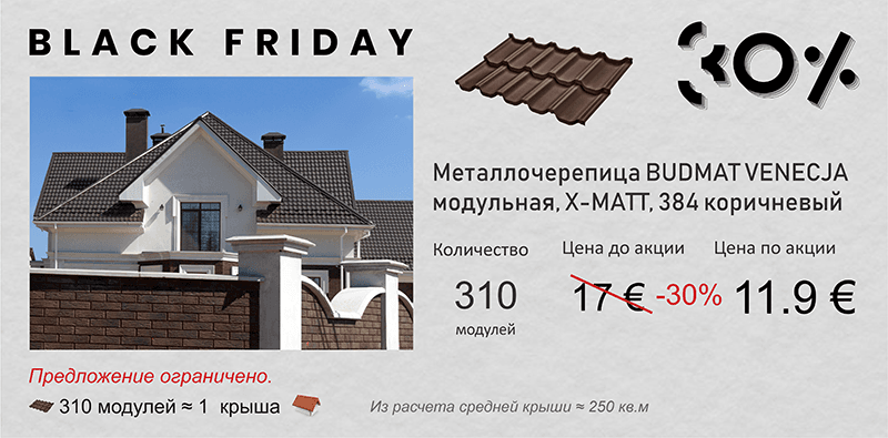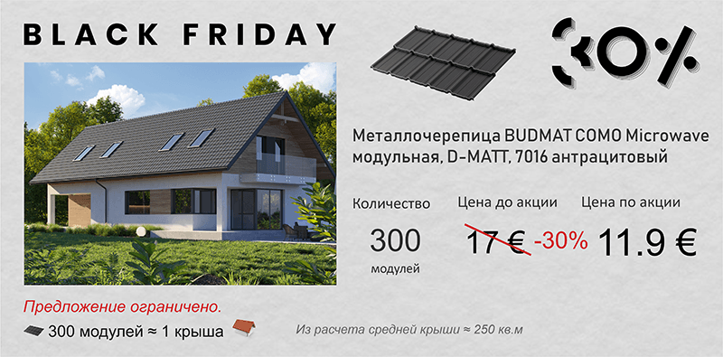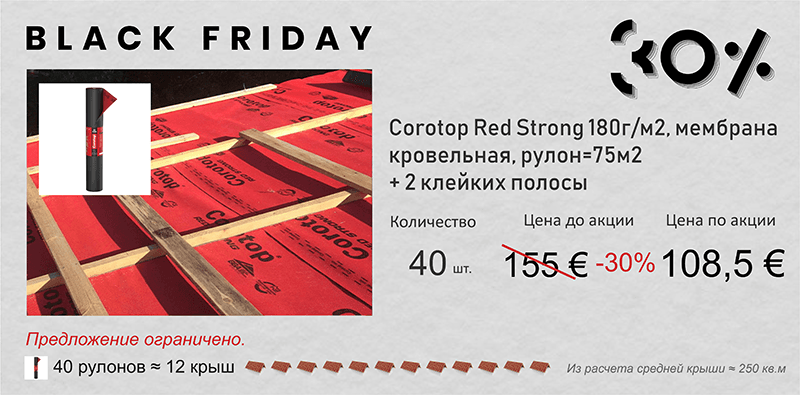 Скидка 30 % на кровлю, мансардные окна, кровельную мембрану, водосточную систему и многое другое.