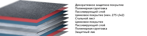 Покрытие изготавливается крупнейшим мировым производителем стали – ArcelorMittal (Германия). Мы – единственная компания во всей Европе, имеющая письменную гарантию от ArcelorMittal на повторяемость цвета. Полимерное покрытие D-Matt – это подтверждённая временем высокая прочность и устойчивость к коррозии и царапинам (пескострую). Важнейшие технические характеристики: толщина декоративного полимерного покрытия 35 микронов, адгезия покрытия (гибка при Т) : ≤ 1 T; устойчивость к растрескиванию при гибке (гибка при Т) : ≤ 2 T; устойчивость к ударам: 18 Дж; устойчивость к царапинам (Clemen) ≥ 1,5 кг; устойчивость к коррозии: Категория RC3; устойчивость к УФ-излучению: тест QUV (UVA + H2O) (2000 часов). Содержание цинка в металлической оболочке составляет 275 г/м². Если Вы ищете покрытие с красивой, матовой и ярко выраженной зернистой структурой, D-Matt – это то, что Вам нужно.