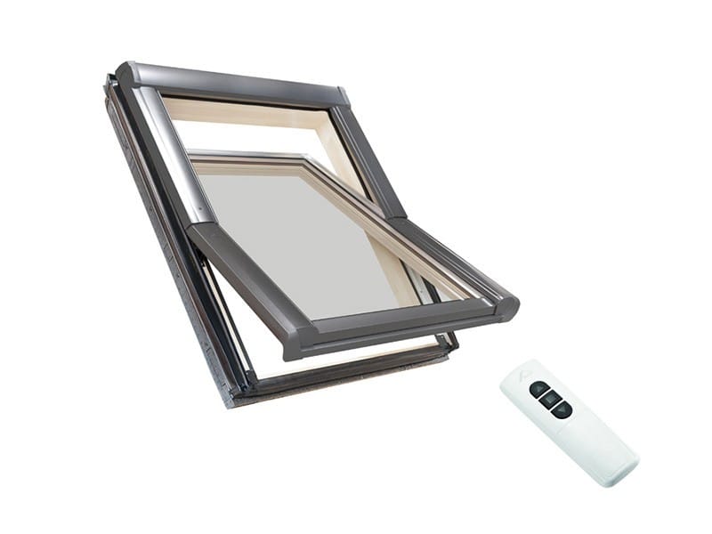 Мансардное окно на дистанционном управлении Roto Designo R4 RotoTronic с центральной осью вращения створки является идеальным решением для установки на большой высоте и других труднодоступных местах.